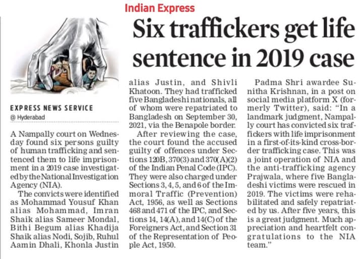 As one of the most powerful voices advocating nationally and globally for victim-centred services, Prajwala, in its 30 years of existence, has assisted the police in rescuing thousands of women and girls from sex slavery and facilitated their journey to recovery. Prajwala is both an organisation and an โ€œidea,โ€ demonstrating that sex slavery is unacceptable and can be combatted through strategic interventions aimed at preventing it at the source, reducing demand, and protecting victims and survivors.